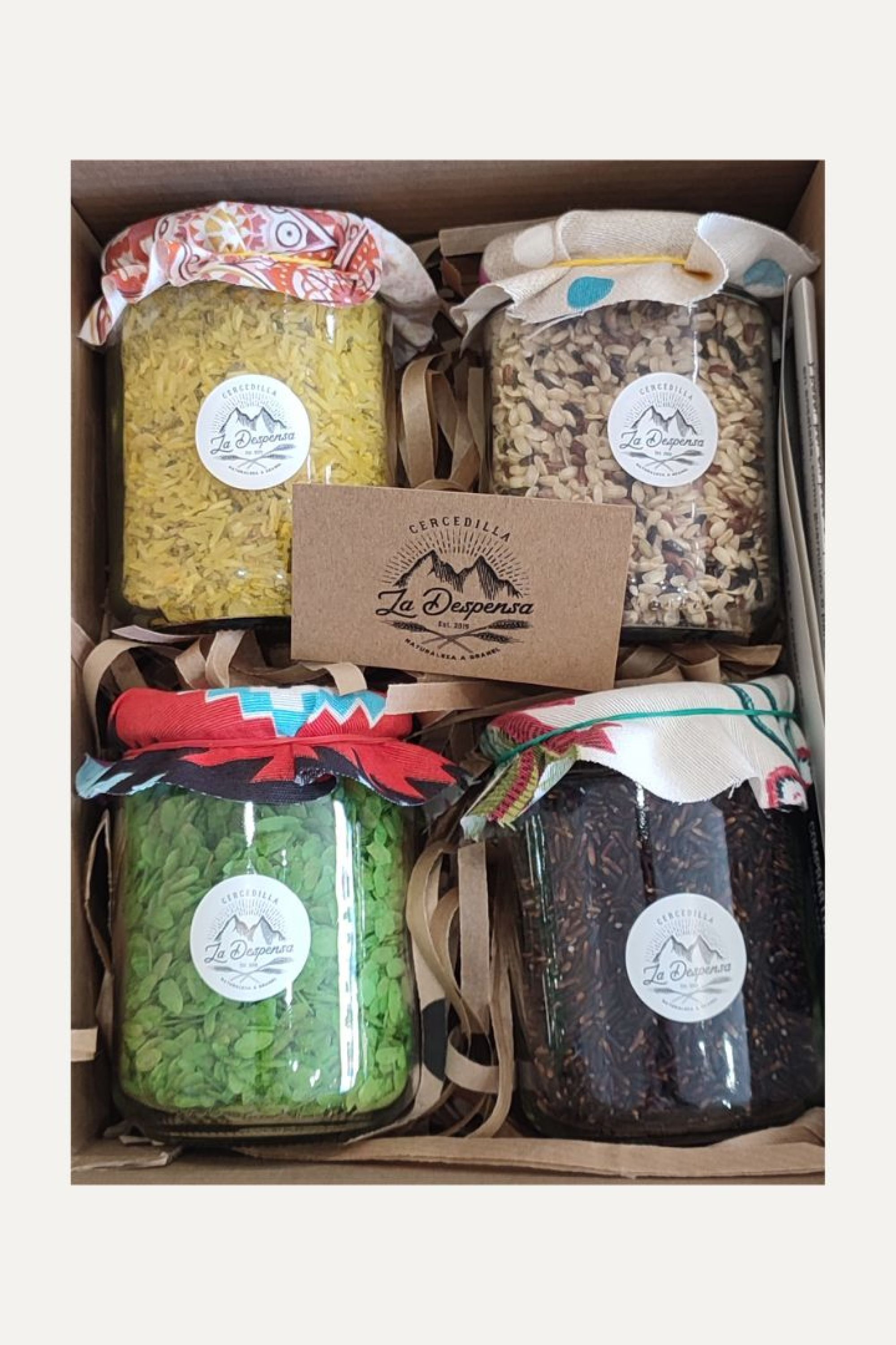 Se presenta en bolsa de papel kraft y natureflex. Contiene 300 gr de cada tipo de arroz.
