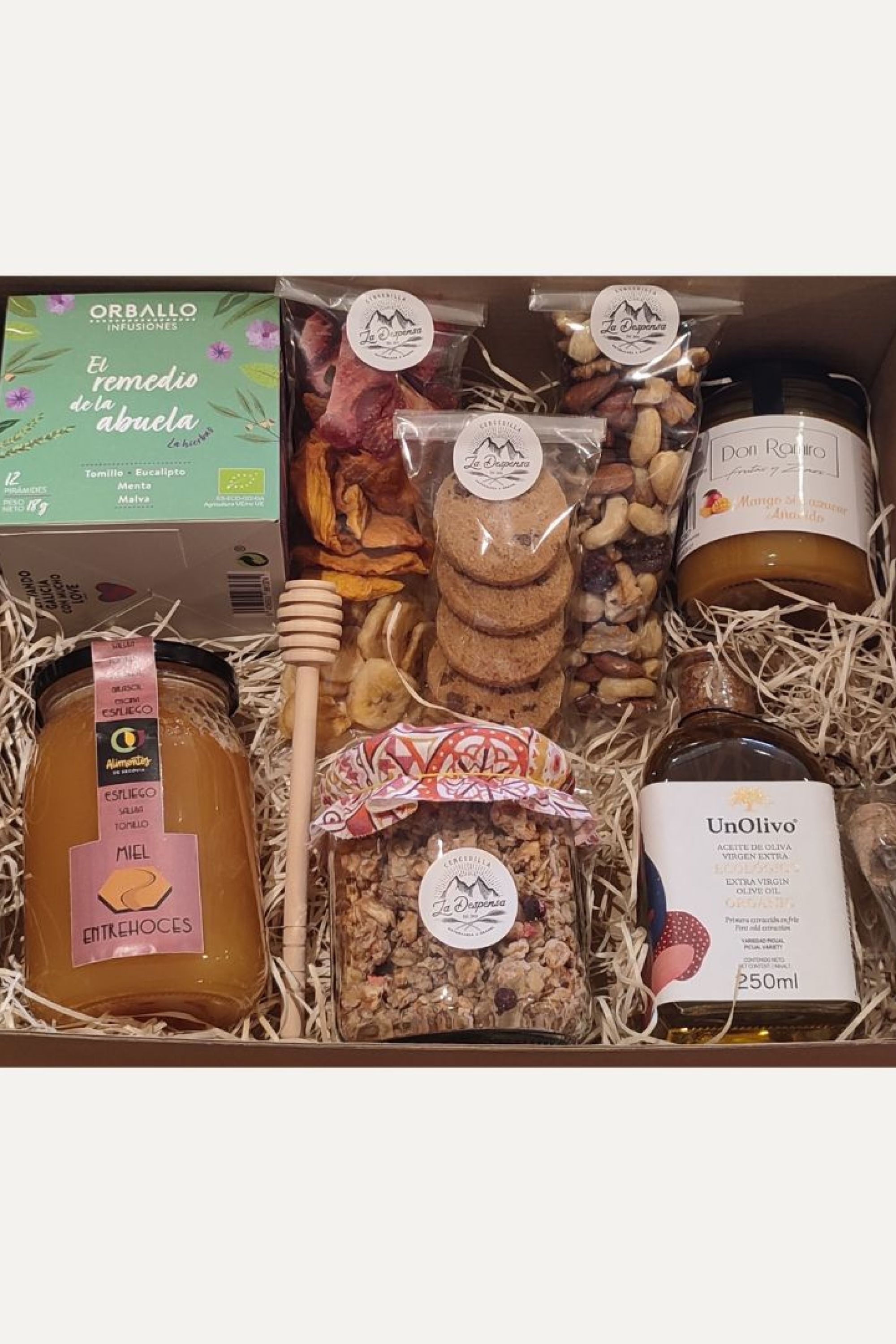Caja de regalo para fanáticos paelleros que contiene los ingredientes estrella para un buen arroz: