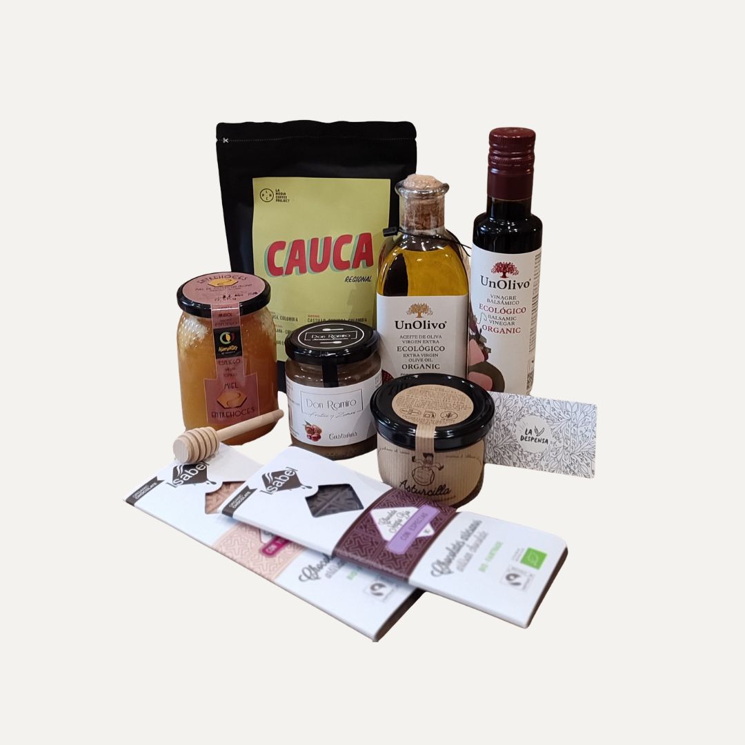 Este pack contiene una selección de legumbres de gran calidad y de origen nacional. Incluye: judión gordo Granja, fabe asturiana, alubia verdina asturiana, alubia pinta de La Bañeza, lenteja pardina de Valseca y garbanzo Fuentesaúco. Este pack se presenta en una caja de cartón reciclado. La caja contiene seis tipos de legumbre categoría extra envasadas en bolsas de papel y natureflex. Además incluye una bolsita de algodón organico para cocer legumbres.