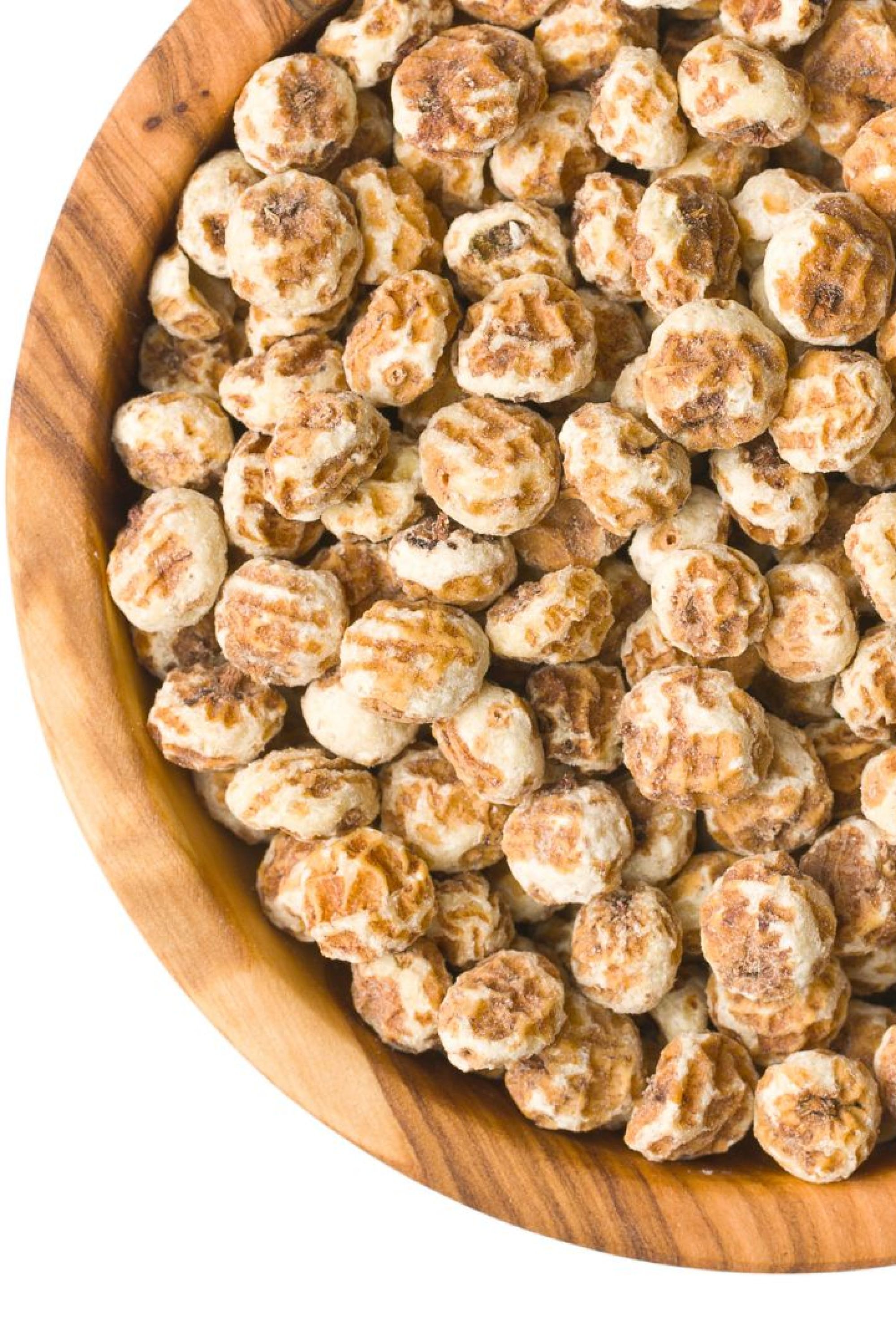 La chufa es un pequeño tubérculo de origen milenario que podemos consumir de diferentes formas para aprovechar todos sus componentes, como los hidratos de carbono, las grasas, la fibra y las proteínas. Aunque su principal uso es para la elaboración de horchata, las chufas secas se pueden incluir en la dieta como snack o aperitivo, al igual que otros frutos secos.