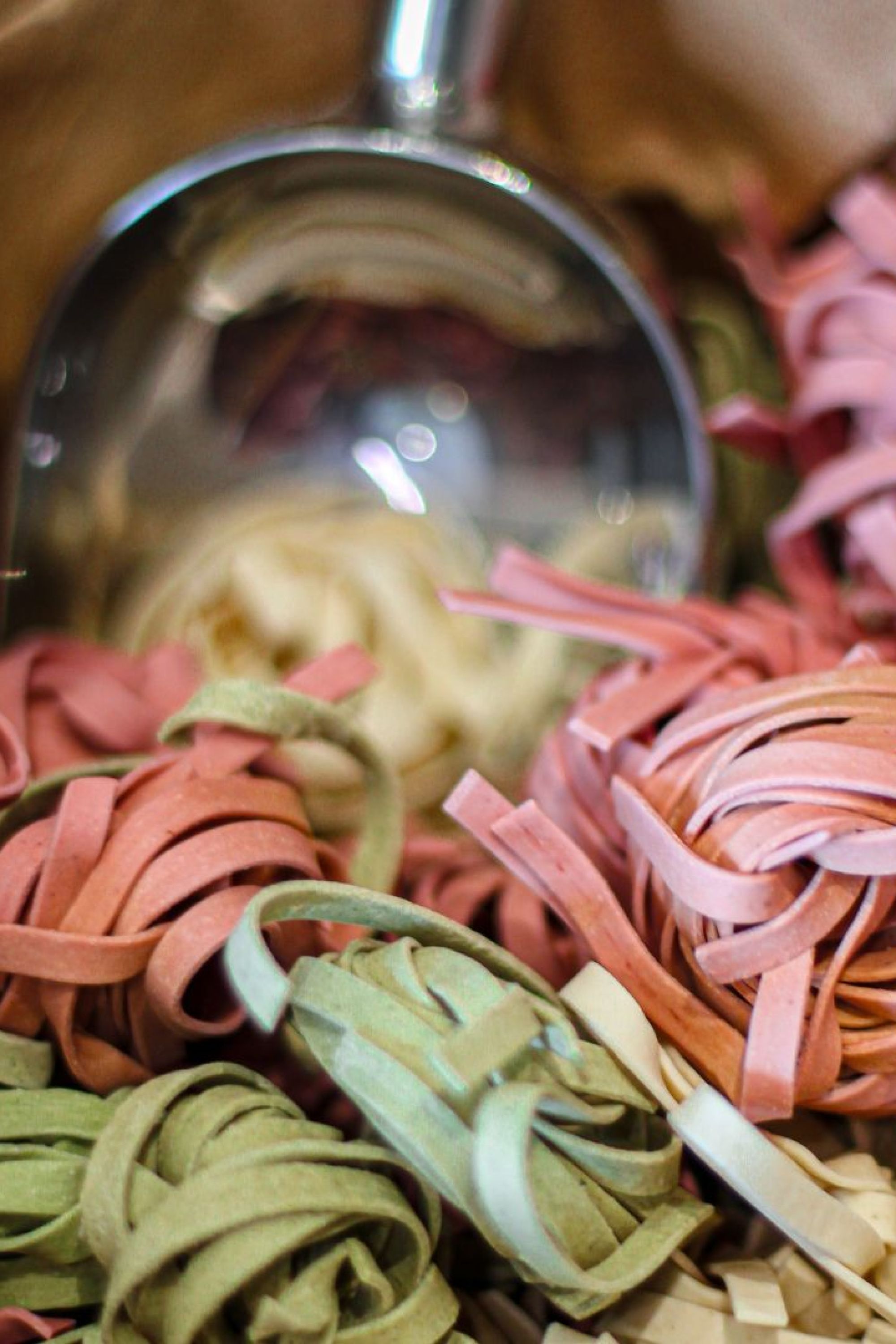 Pasta de tomate, espinaca y remolacha de elaboración manual y secado a baja temperatura, lo que garantiza su punto de textura óptimo.