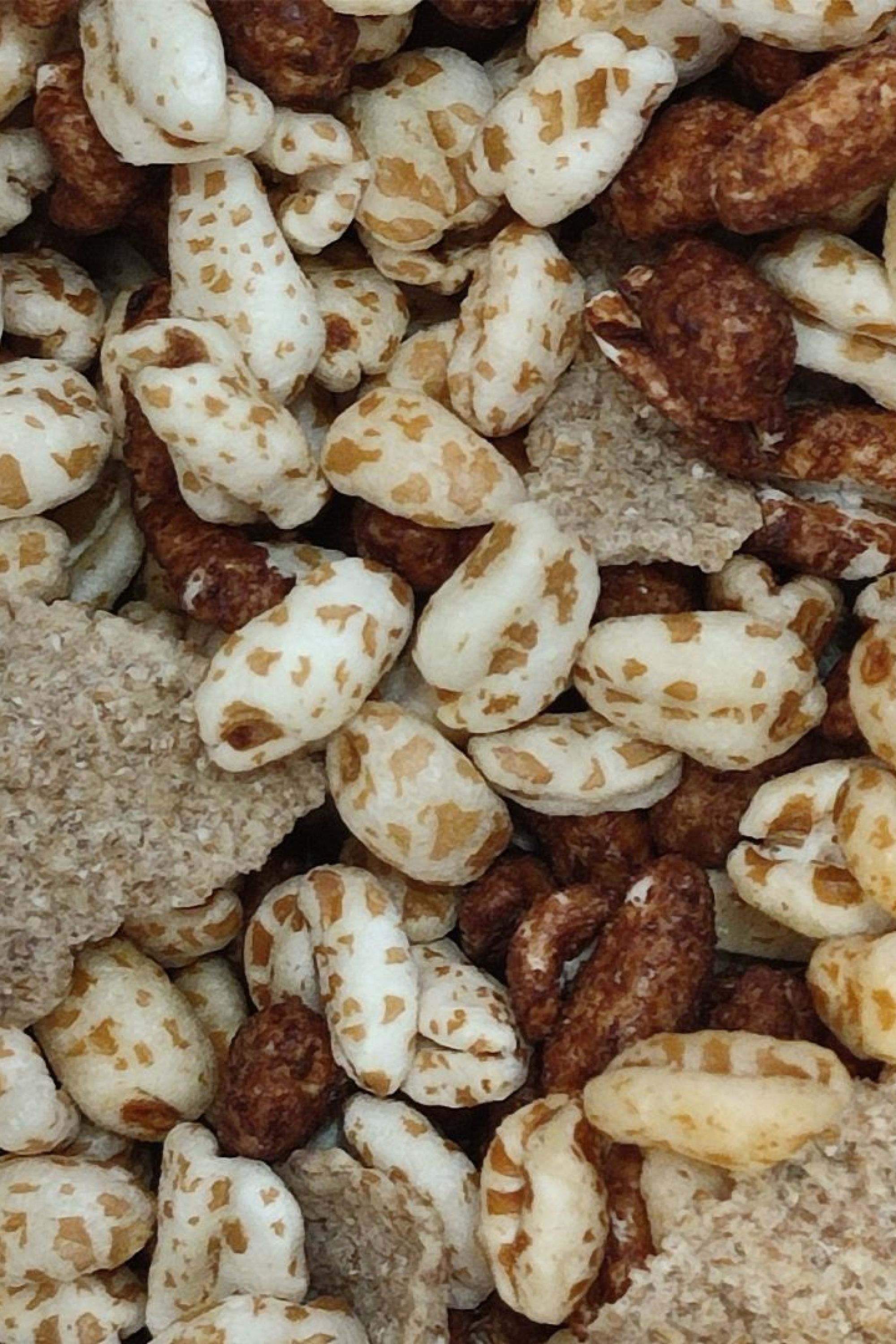 Ingredientes: Trigo espelta hinchada* (25%), Trigo espelta hinchada con miel* (25%)(trigo espelta (53%), azúcar integral, sirope maíz, miel, aceite girasol), Trigo espelta hinchada con chocolate* (25%)(trigo espelta (58%), azúcar integral, chocolate puro (6,9%)(pasta cacao, azúcar integral, manteca cacao, emulgente (lecitina de soja), extracto vainilla), cacao polvo, sirope maíz, aceite girasol), Copos de trigo espelta extrusionados* (25%)(harina integral de trigo espelta (86%), azúcar de caña, harina de malta de cebada, sal).