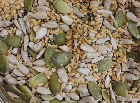 Deliciosa y equilibrada mezcla de semillas ecológicas. Contiene pipa girasol, sésamo natural, pipa calabaza, lino y amapola.