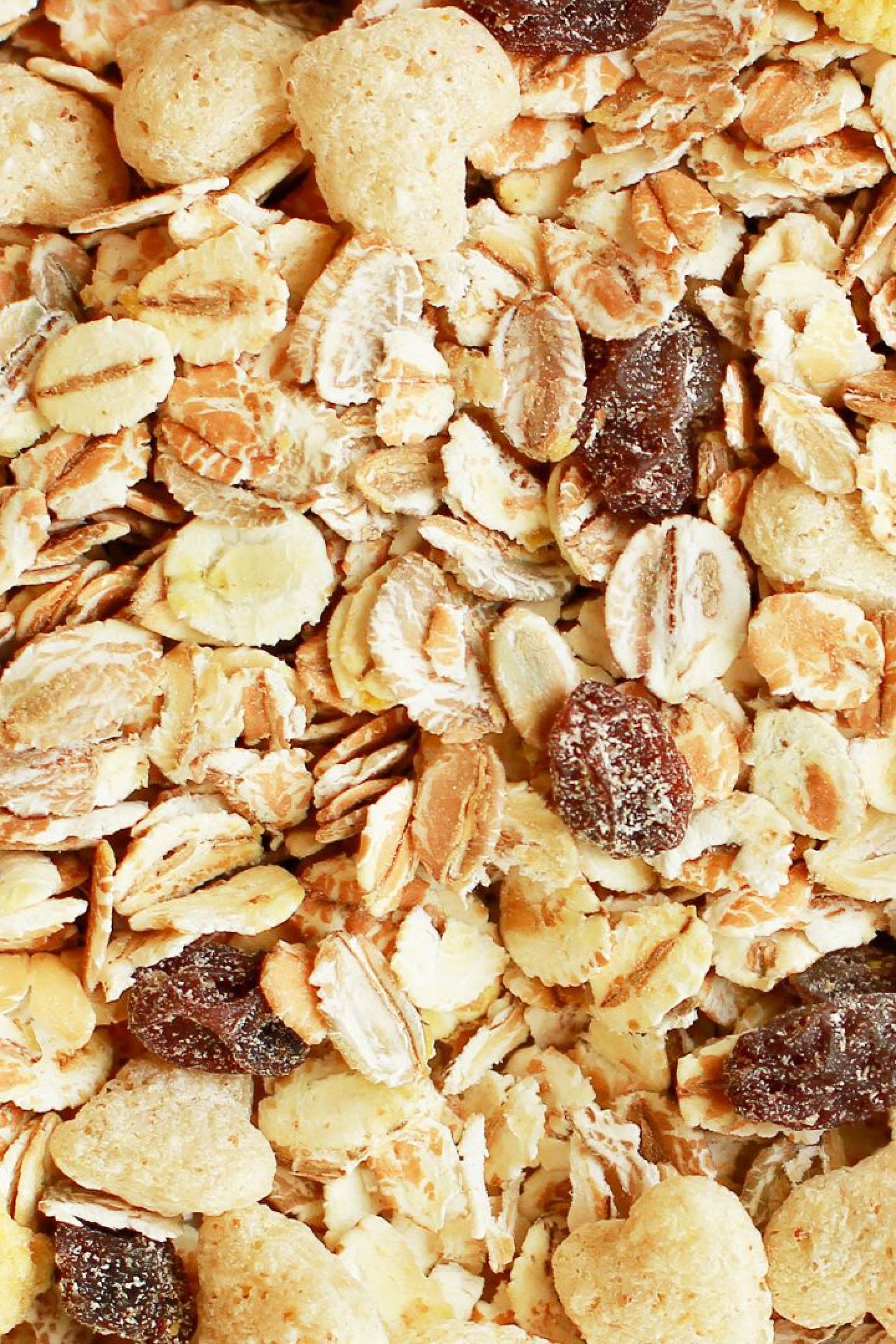 Ingredientes: copos de avena*, lino dorado*, coco láminas*, uvas pasas*.