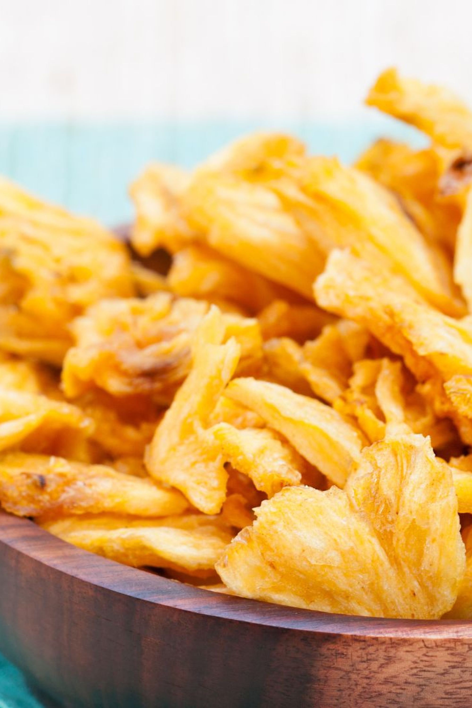 Esta fruta tropical, muy rica en azúcar, incrementa de manera notable sus propiedades tras el proceso de secado. Lo que más llama la atención es su alto contenido en hidratos de carbono de asimilación lenta, ya que pueden superar el 80% de su composición. Por este motivo debe ser consumida con moderación en caso de diabetes o sobrepeso. Por el contrario, es una importante fuente de energía para deportistas, ya que apenas un puñado de piña desecada aporta vitalidad para afrontar cualquier tipo de práctica deportiva. Además, es un producto 100% natural, sin colesterol y con unos niveles de grasa insignificantes.