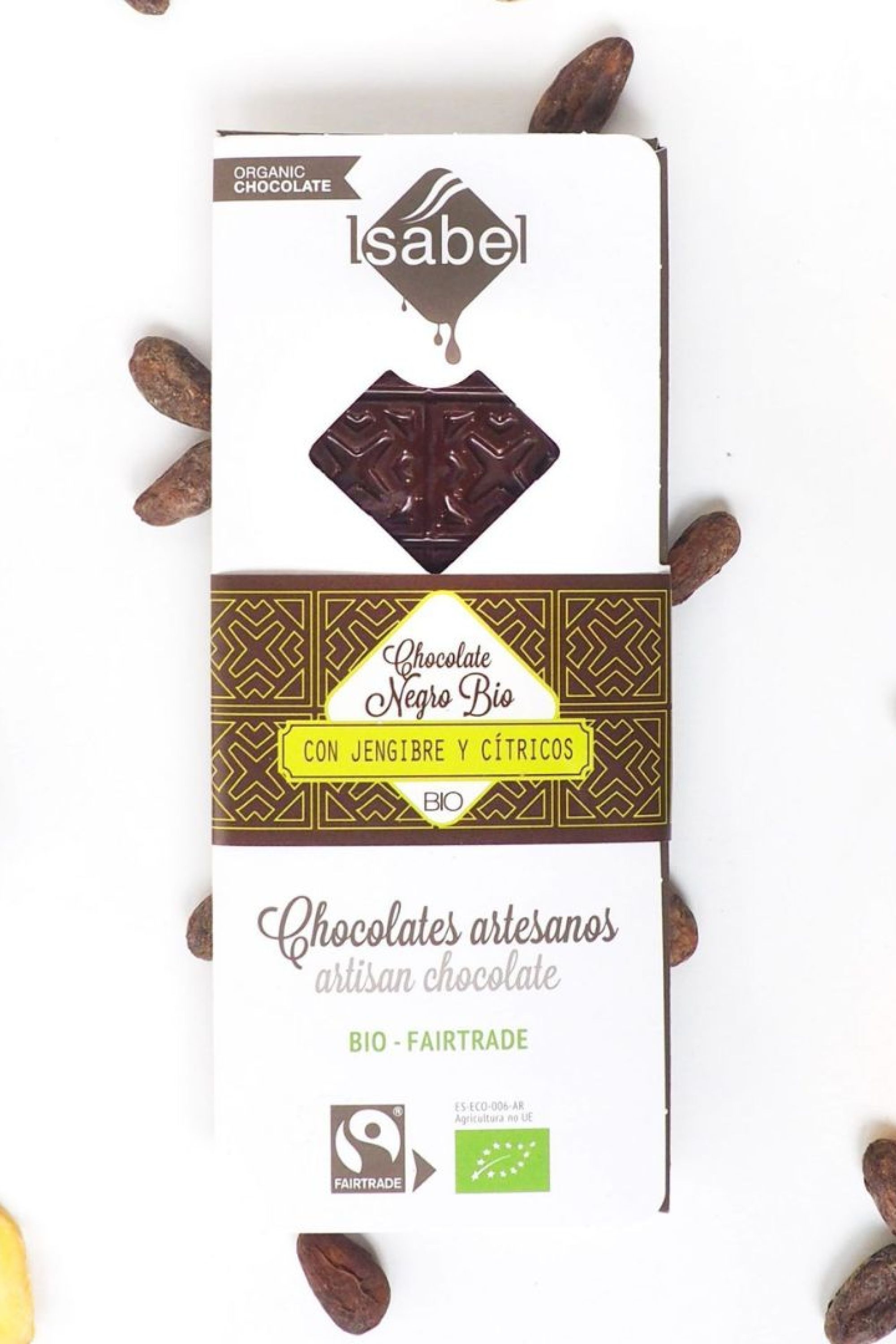 Tableta BIO y Comercio Justo de Chocolate Negro con Jengibre, Naranja y Limón.