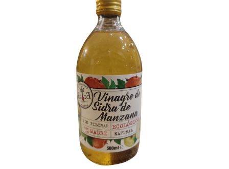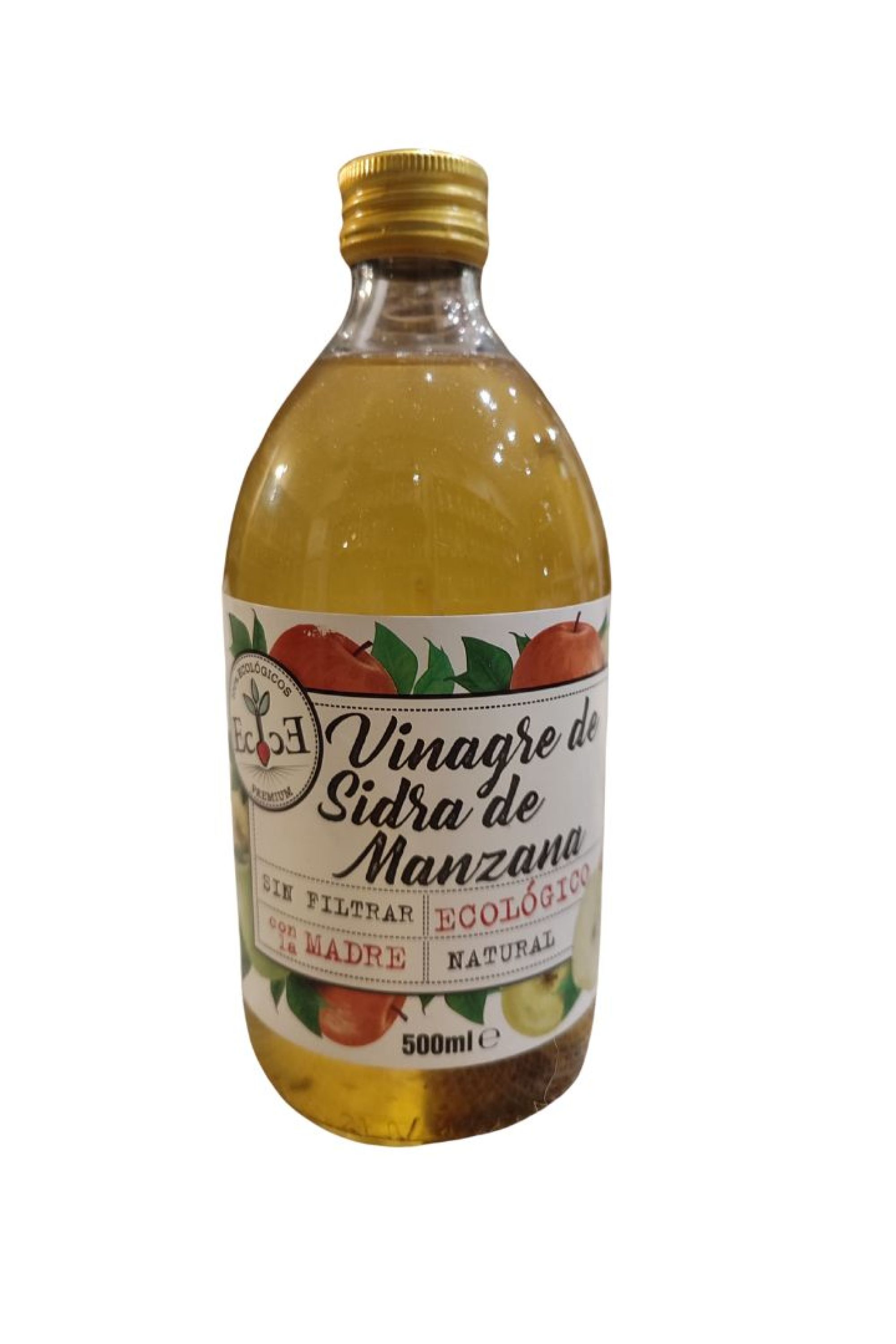 Vinagre orgánico puro de sidra de manzana sin filtrar y sin pasteurizar. Producido directamente de la fruta prensada en frío.
