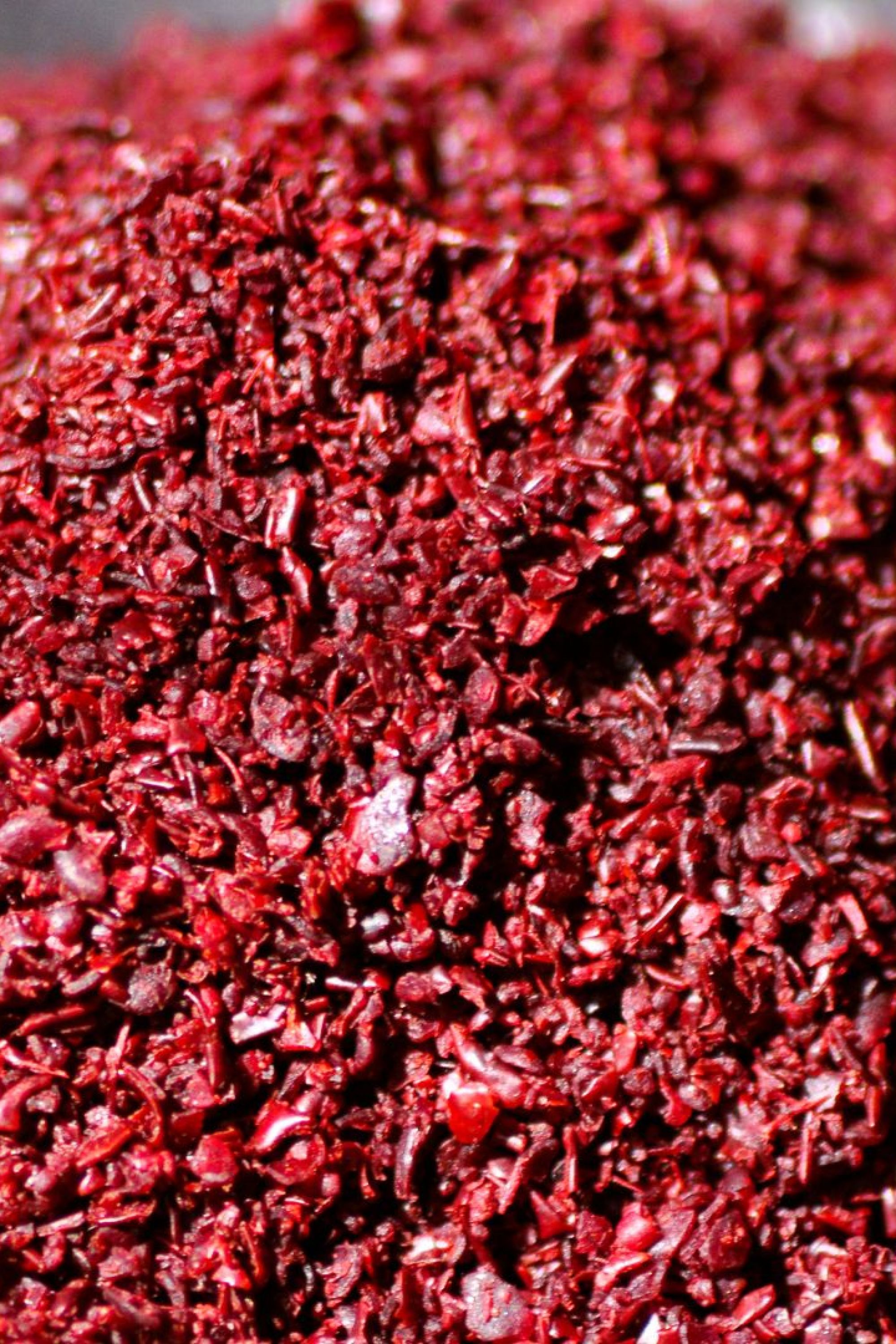 El zumaque o sumac son en realidad bayas molidas que provienen de un arbusto de la familia de anacardos. El fruto de esta planta, unas bayas de color rojo, se recogen, secan al sol y muelan para ser usadas como una especia.